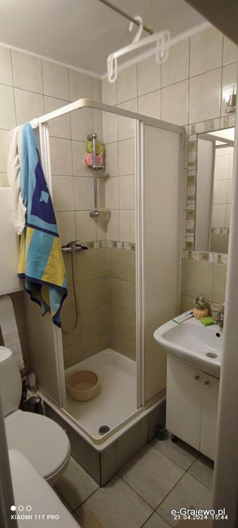 Mieszkanie składa się z przedpokoju , łazienki /wc prysznic pralka umywalka / , pokoju połączonego z aneksem kuchennym oraz oddzielną sypialnią